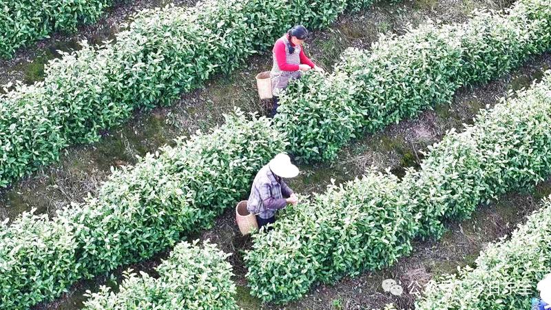 茶山上,采茶人三三两两在梯田间忙碌,指尖翻飞,竹篓渐满;桃园里,三五成群的游客穿梭花海,举着手机定格春光;村口公园里,几位老人坐在长椅上唠家常,笑声朗朗… …