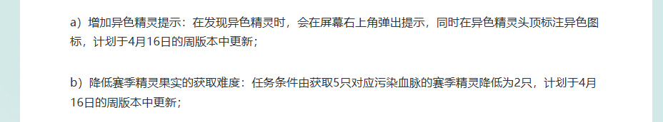 光是这两点,玩家就不用再像以前那样担心精灵球消耗,但想要大隐藏,还是得靠自己努力去抓,一视同仁。同时,在发现异色精灵之后,会增加视觉提醒。并且获取赛季精灵果实的难度也降低了(精灵果实是一种获得后便可保证该精灵持续稳定出现的内容)。