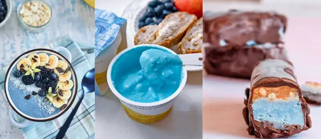 从中提取的“藻蓝蛋白”,是一种蛋白质本身携带的湛蓝色。它安全、可溶,且带着淡淡的海洋鲜味。当pH值变化时,它还能从蓝色变为蓝紫色,给了研发人员巨大的调色空间。