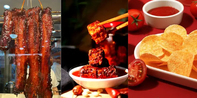 它提供的红色,厚重、温暖、稳定,尤其擅长模拟肉类烹饪后的诱人色泽,还能抑制杂菌生长。从叉烧、火腿、红肠,到腐乳、甚至某些番茄味薯片,都可能找到它的身影。在追求“无亚硝酸盐”火腿的时代,红曲米几乎是不可替代的天然选项。