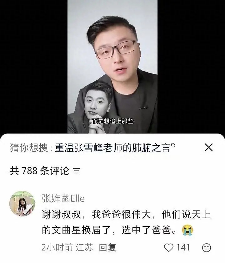 张雪峰的好友沈南发了一条悼念视频,放了一些两人的合照,语气满是不舍。评论区里,张姩菡悄悄留了言,没有大哭大闹,也没有说太多话,只是轻声回了一句:谢谢叔叔,我爸爸很伟大,他们说天上的文曲星换届了,选中了爸爸。