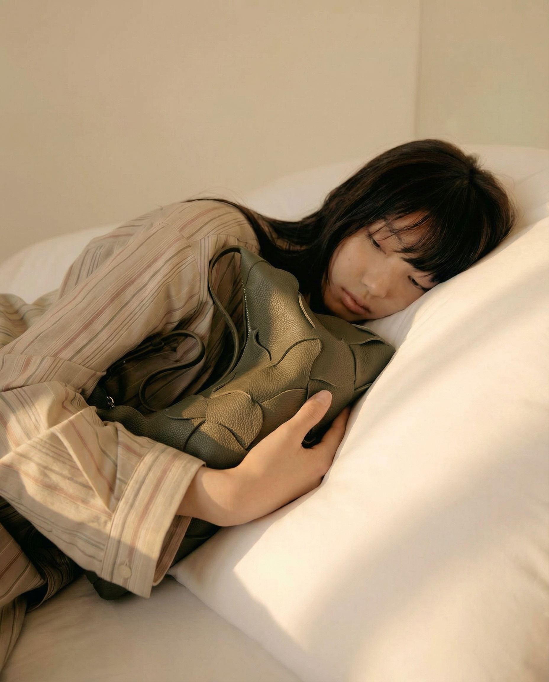 全新Jole 36 手袋首度呈现Intreccio Grande大编织工艺,将柔韧升华至建筑般的美学形态。宽大的编织结构在掌间温柔舒展,形成橄榄绿与裸色的流畅轮廓,在大气尺度与亲密触感之间取得平衡。皮革的自然柔韧与编织的节奏张力相得益彰,成就一款充满生命力的手袋——柔中带骨,小巧而包容。