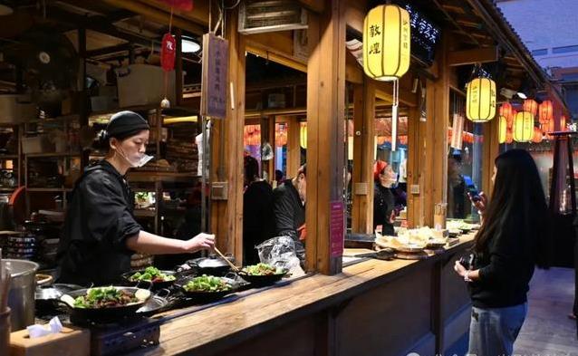 走进沙州食驿,最先感受到的就是那股浓浓的烟火香气。这股味道来自当地各种美食,仿佛把丝绸之路上的风味都集中到了这里。走廊呈回字形排列,摊位一个挨着一个。炭火燃烧时发出轻微的声响,热气不断向上飘散,带着不同食物的香味在空气中融合。