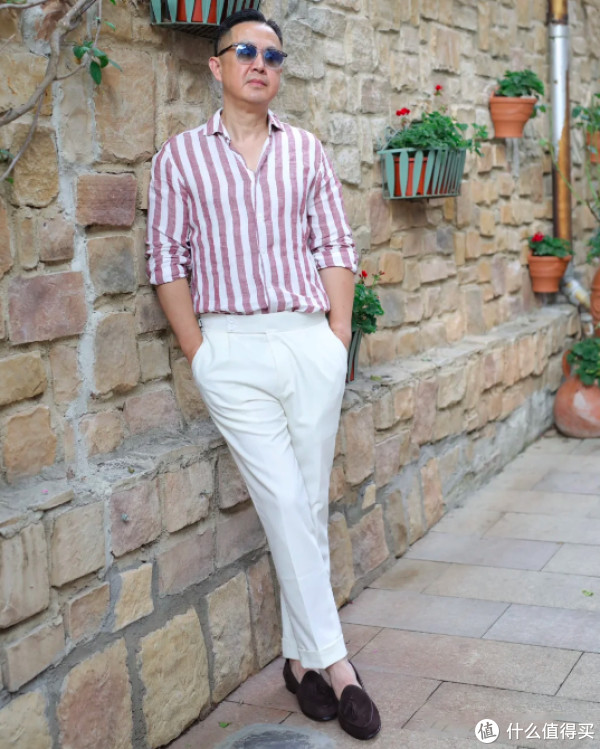 颜色鲜艳,且带有各种印花图案的服装,乍一看时髦,但实际穿在身上却不如人意,给人一种用力过猛、刻意装嫩的违和感。尤其是50岁男人穿上后,还会增加油腻感,整个人显得没有一点品味,过于浮夸、个性、时髦,反倒有悖于自身年龄气质。