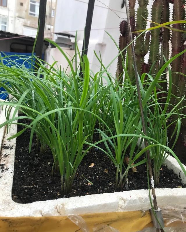 只要春雨一下,天气一暖和,它就会长得特别茂盛呢,所以在家里阳台上种一盆韭菜是不错的。这样就会经常有韭菜吃了啊。太安逸了哦!