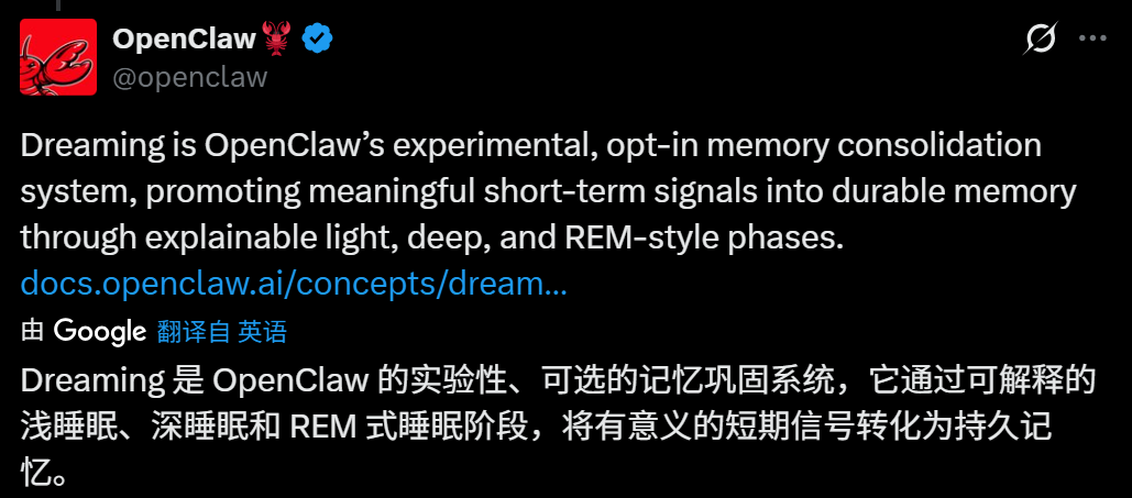 这个时期人类处于梦境最活跃的状态,OpenClaw用这个状态来形容一个新的模式:REM生成。