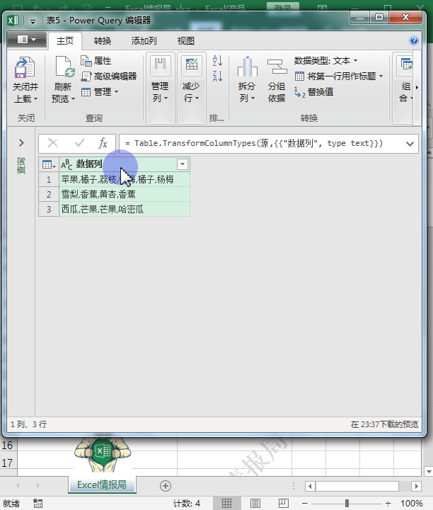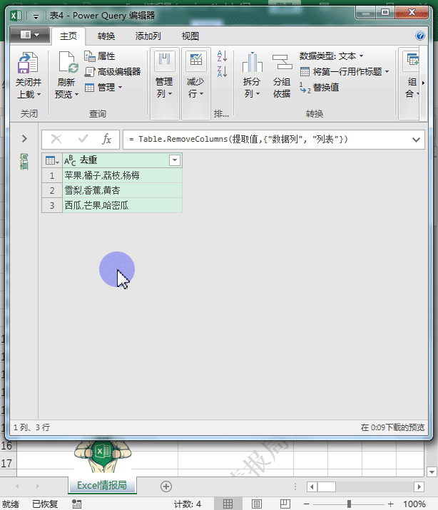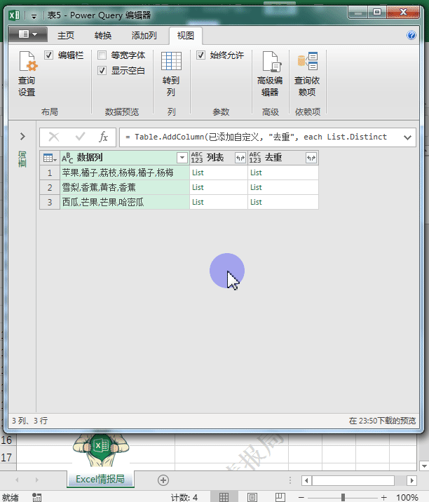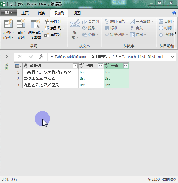 得到一个列名称为“列表”的新列数据。