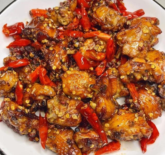 把鲜嫩鸡肉切成小块,和辣椒一起爆炒。鸡肉被炸得外酥里嫩,辣椒的香味全都渗进肉里,又香又辣,超级下饭!