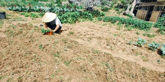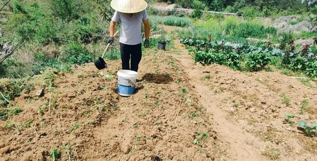 我们把底肥均匀地撒在种植坑底部,然后在上面覆盖一层几厘米厚的土壤,再把菜苗种进去。这样,土壤就起到了缓冲的作用,让肥料慢慢释放养分,菜苗既能吸收到营养,又不会伤到根。