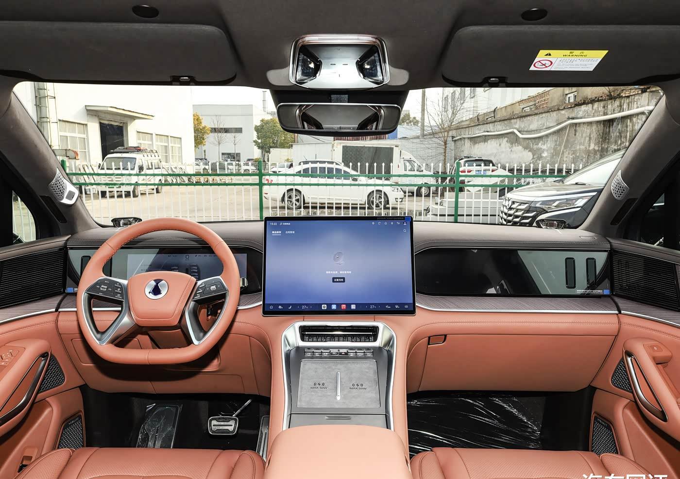 安全与智能同样不妥协。车身采用4层热成型钢A柱,扭转刚度达40000N·m/°;全系标配天神之眼B高阶智驾,搭载激光雷达与32个传感器,支持无图城市领航、智能泊车。车内配备26扬声器帝瓦雷音响、11L三开门冰箱、二排座椅横向移动,六座布局全电动调节,豪华感拉满。