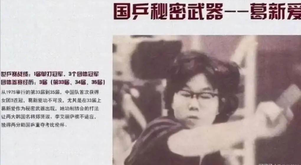 1975年,第33届加尔各答世乒赛,葛新爱第一次登上世界大赛的舞台,就被当作国乒的“秘密武器”临危受命。