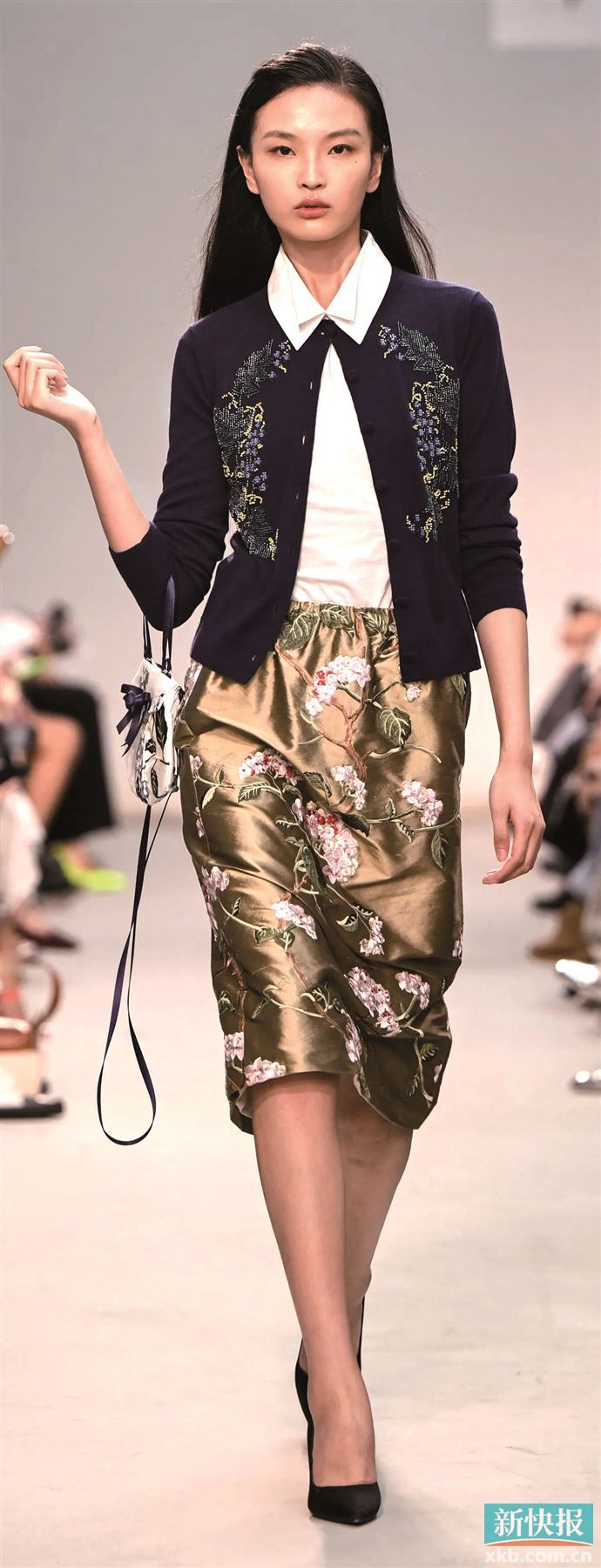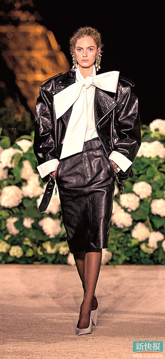 本季领结还有一个特点是不再局限于颈部,有将小型领结点缀在衬衫门襟的设计巧思,也有将领结元素与裙摆结合的解构主义创作,以此诠释新古典主义的浪漫精髓。