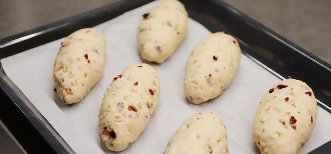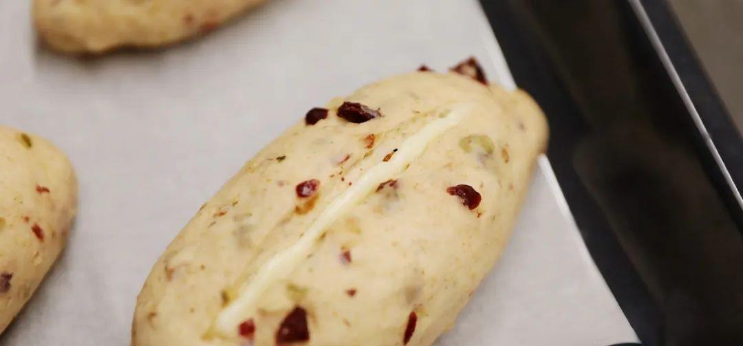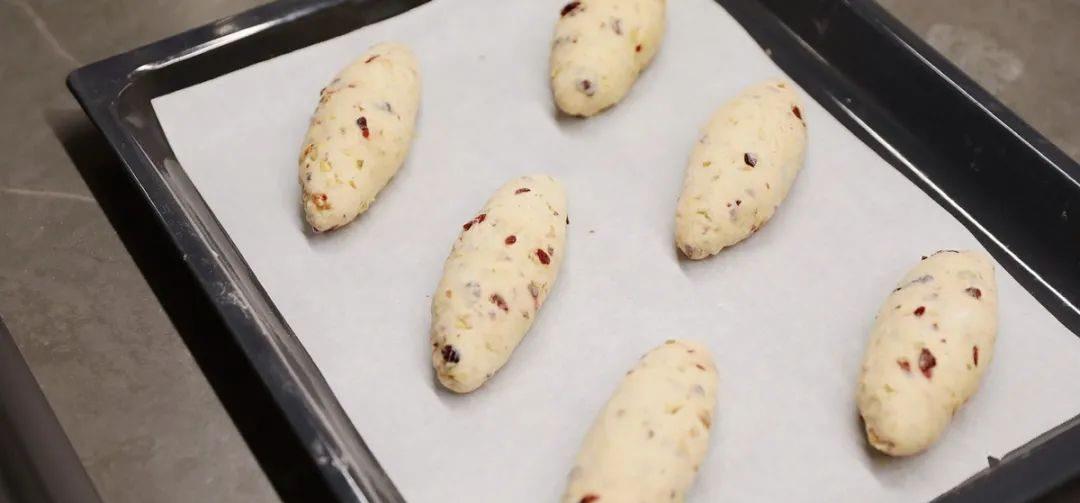 也可以用葡萄干代替蔓越莓干(与蔓越莓干可以直接使用不同,葡萄干需要提前用清水或朗姆酒泡软,并沥干水分),葡萄干也要切碎哦。