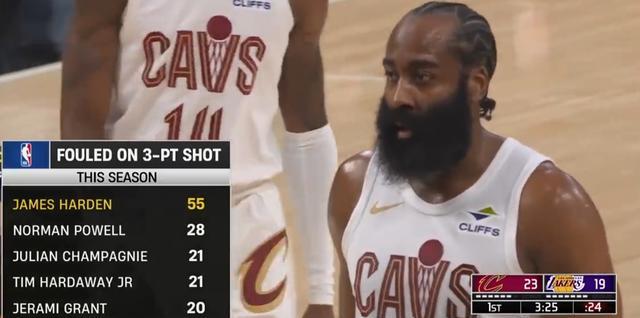 比赛当中,转播商晒出一组数据,本场比赛之前,骑士球星哈登赛季至今55次造成三分犯规断层领跑全联盟,热火球员诺曼-鲍威尔28次位列次席,马刺球员朱利安-尚帕尼和独行侠球员小蒂姆-哈达威以21次并列第三。