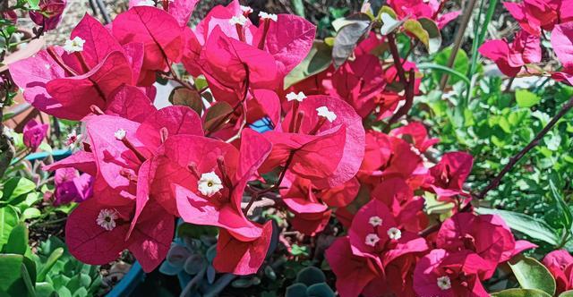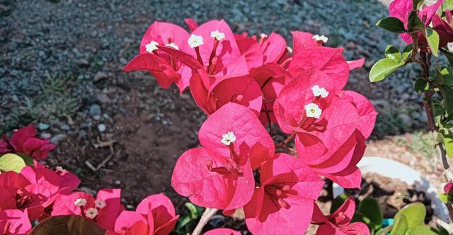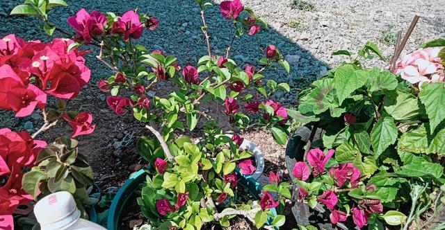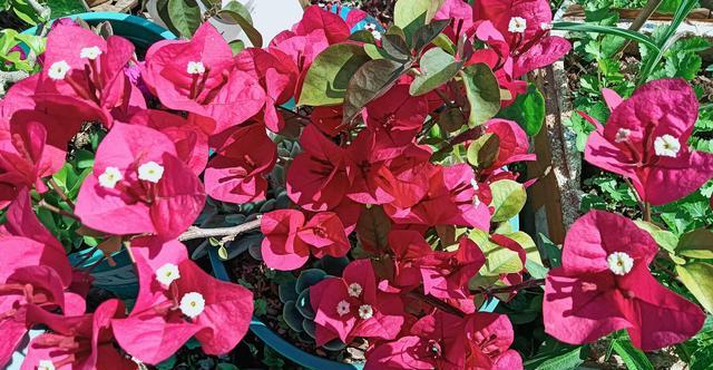 如果是光照少的话,植株它就生长不良好,它开花就会少,孕育的花苞就会少。如果花友们的三角梅想要它直见花不见叶,除了给他施磷酸二氢钾以外,还要满足他有充足的光照,每天有八小时左右的直射光,这样才会孕育大量的花苞。