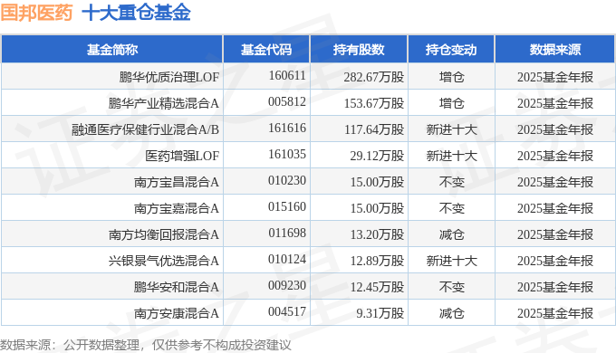 持有国邦医药最多的基金为鹏华优质治理LOF,目前规模为10.57亿元,最新净值1.4564(4月16日),较上一交易日上涨0.36%,近一年上涨29.67%。该基金现任基金经理为陈金伟。