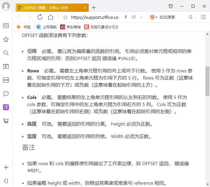 OFFSET函数的参数height和width若不指定,则默认与 reference 的尺寸一致。