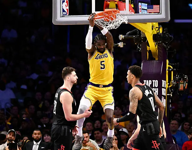 本场比赛中,湖人的先发中锋德安德烈-艾顿(DeAndre Ayton)的表现算得上是令人刮目相看。艾顿全场出场35分03秒,投篮10中8,罚球3中3,得到了19分11篮板2助攻1盖帽的两双数据,其中还包括了3个前场篮板,还有3次失误和1次犯规,正负值为+7。艾顿在进攻端展现出了自己超强的篮下得分能力和终结能力,不断给对手内线制造压力,并且拿下了大量的分数。如果艾顿能够得到更多的球权和更多的出手机会,他显然还能够得到更多的分数。不仅如此,艾顿在防守端也对对手的全明星中锋阿尔佩伦-申京(alperen Sengun)进行了有效地限制,导致了申京没有办法发挥出自己的得分能力。总体来看,艾顿在本场比赛中打出了攻守兼备的全能型表现,展现出了自己全方位的才能,为球队的这场胜利做出了巨大的贡献。