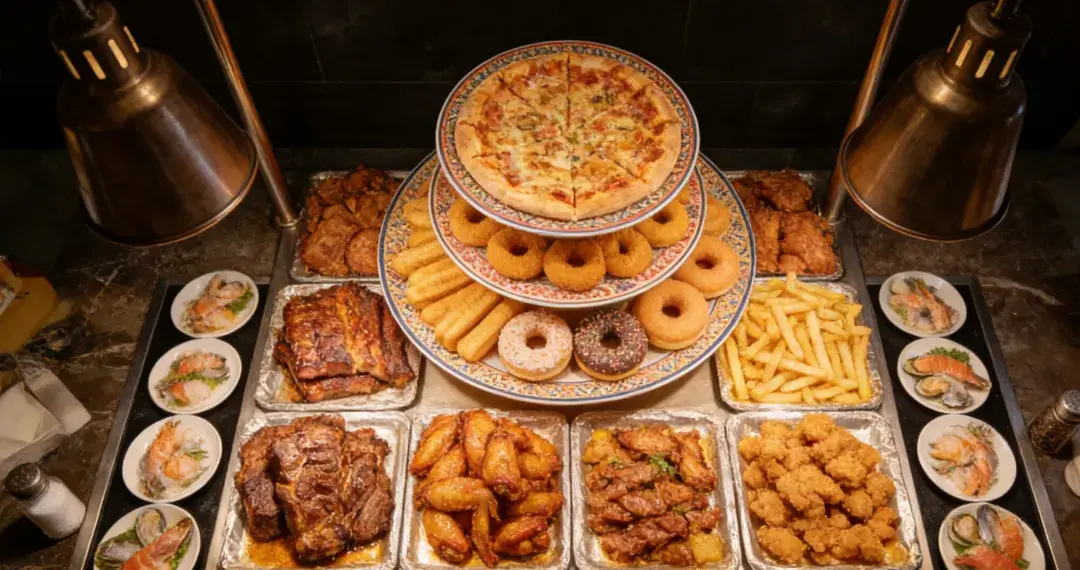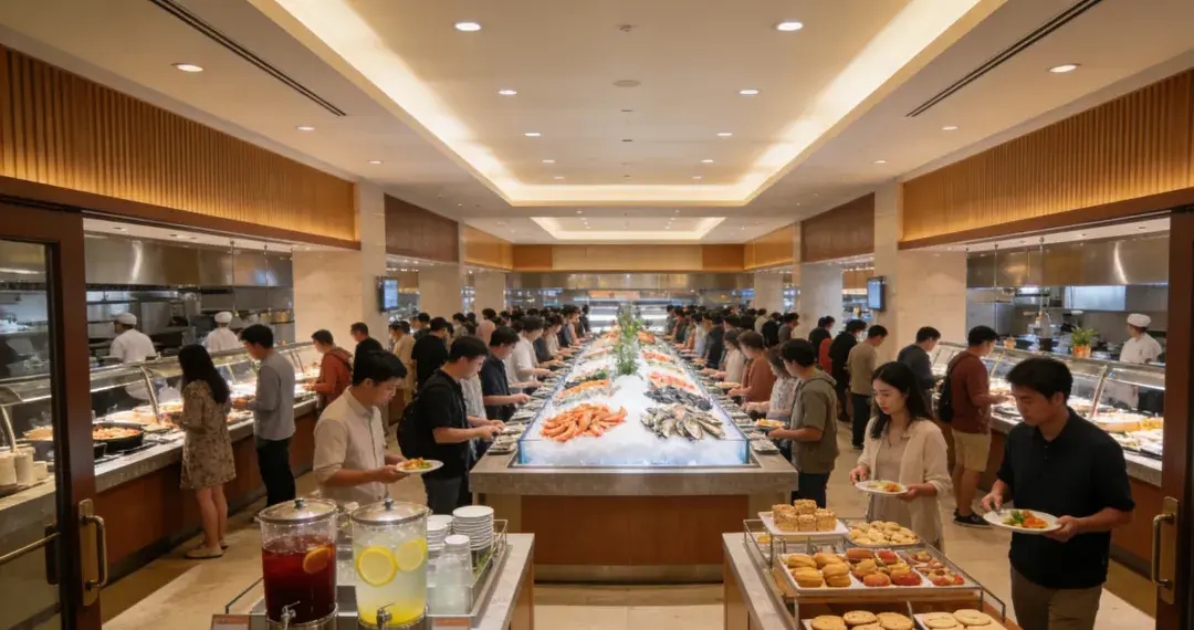 再去吃自助餐,记得先喝一杯温水垫肚子,直奔高价值的海鲜和肉类,少拿油炸和碳水,慢慢吃、慢慢逛,或许还能离“回本”近一点。