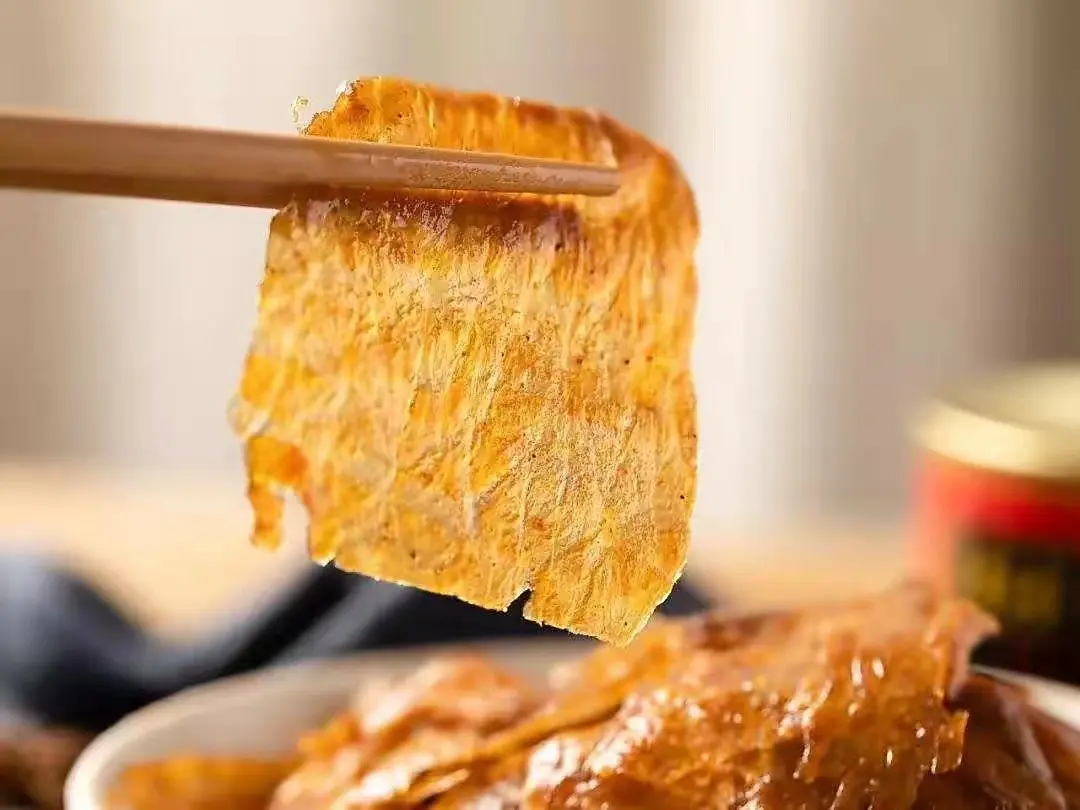 灯影牛肉采用的是牛后腿腱子肉,手工切片制作而成,成品后色泽鲜亮,香脆可口,风味独特,可以久存不变质,牛肉本身又是低脂肪高蛋白的食物,可以强筋骨,养精血,并且有一定的食疗作用。