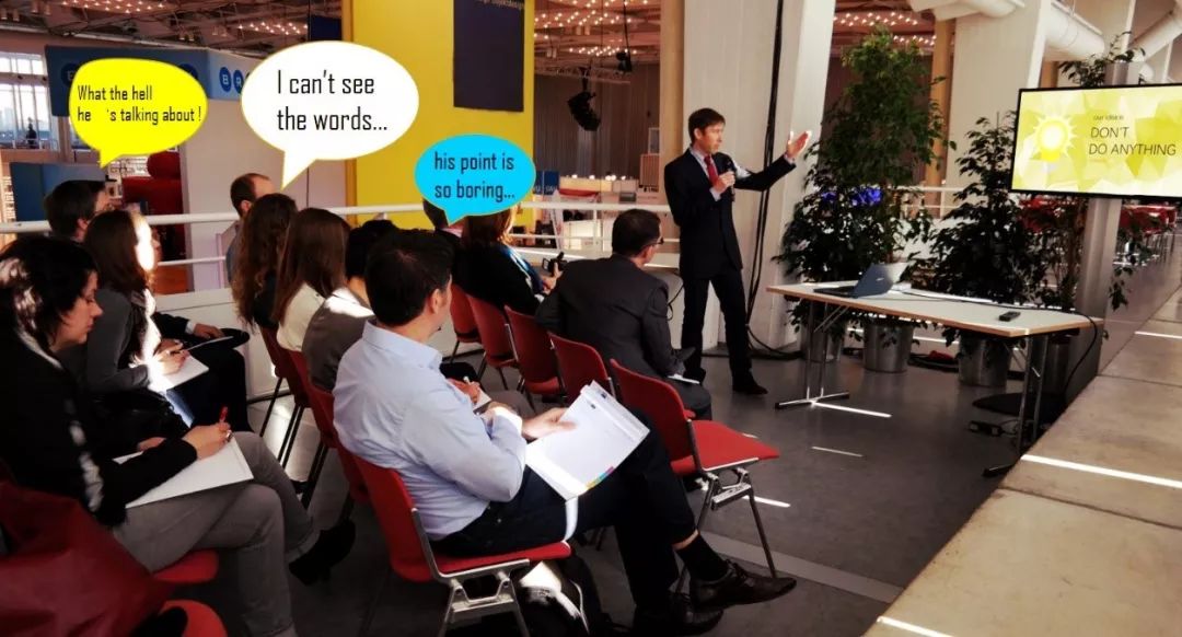 PPT 天然适合简洁、极简设计风格。除了用于打印阅读的文稿,优秀的 PPT 无一不是简洁的。每一个幻灯片页的文字内容都应该是经过提炼后的内容,而不是大量文字的堆砌,更多的补充信息应由讲述者在演讲时口头说明。当然,简洁不是简陋,否则就显得单调草率了。下面两页 PPT,你更愿意看那一页?前一页过小即便有颜色上的区分,听众仍然很难把握重点;相比之下后一页只有短短几个字,却要有力得多。