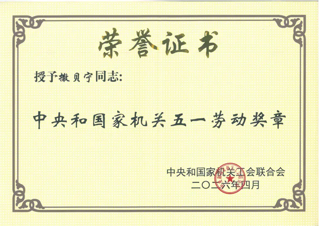此次获得全国五一劳动奖章的撒贝宁出生于1976年,毕业于北京大学。另据“总台之声”微信公众号4月28日消息,中央和国家机关工会联合会日前公布了表彰中央和国家机关五一劳动奖的决定。总台新闻新媒体中心荣获“中央和国家机关五一劳动奖状”,总台综合频道主持人撒贝宁、总台中东总站安卡拉记者站记者陈慧慧荣获“中央和国家机关五一劳动奖章”。