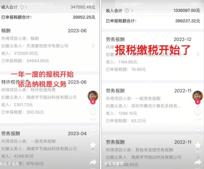 如果把时间线拉长来看,老陈的收入结构其实经历了明显变化,2022 年是高峰期,收入超过百万元,2023 年则依靠出版《你真的安全吗》获得稿酬支撑,到了 2024 年,他开始回归直播带货和打赏,而 2025 年,则是在流量下滑背景下,尝试转向“打假喊话”赛道。