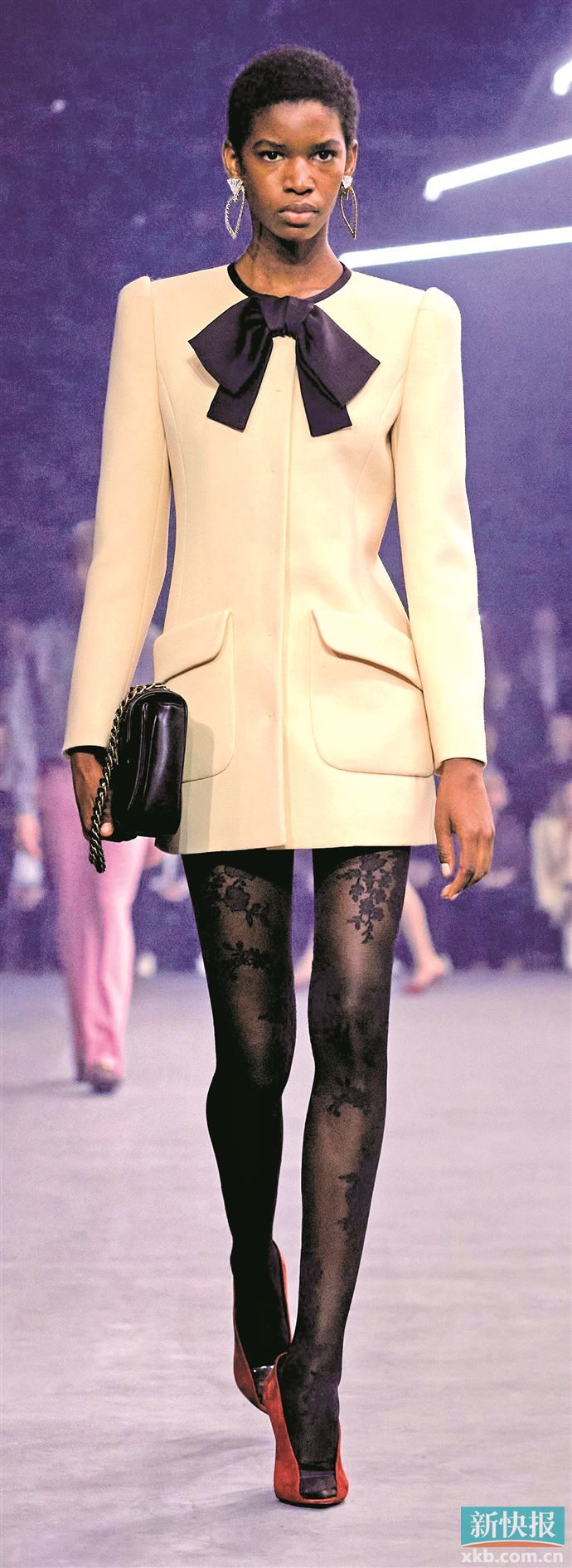 本文转自:新快报丝质领结与硬挺衣装结合的刚柔并济,既保留了造型穿搭的庄重感,同时又注入轻盈诗意。经典蝴蝶结在尺寸放大3~5倍后显得极具戏剧性,与极简风搭配,成为力量穿搭的点睛之笔。古典印花与鲜艳色块融入领结设计,让它成为整