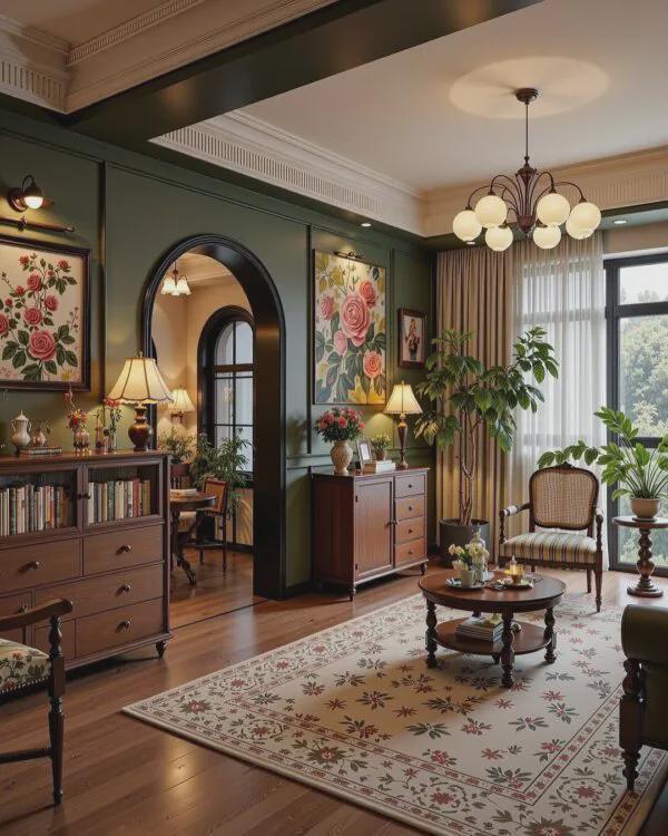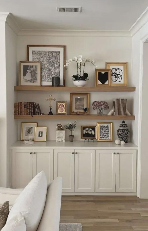 不用强迫旧家具融入整体设计,专门留一个小角落,把旧家具和家庭照片、书籍、现代装饰品搭配,做成专属展示区,既凸显故事感,又不破坏家居整体感,高级又有温度
