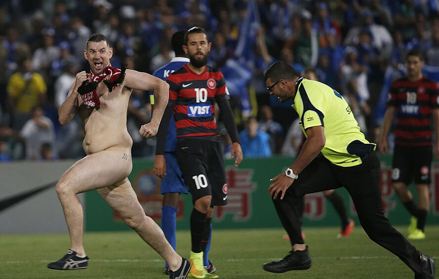 2014痴狂体育迷:为梅西跪地擦鞋 裸奔被扛走