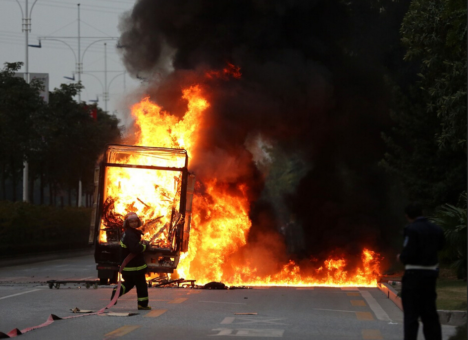 广东佛山一货车行驶中起火 疑因线路短路