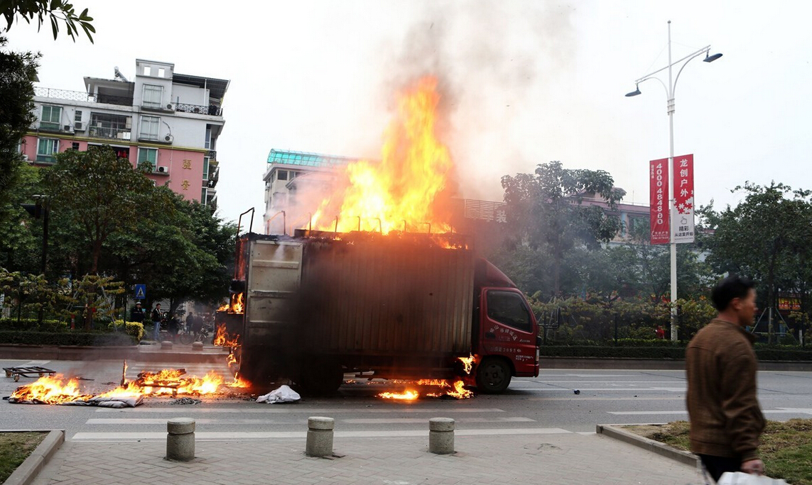 广东佛山一货车行驶中起火 疑因线路短路