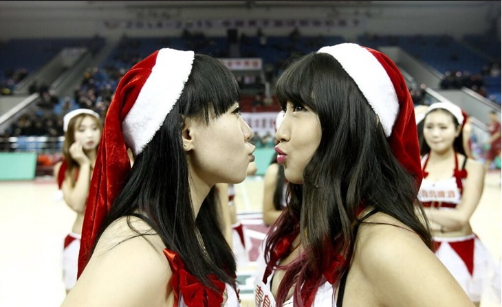 吉林宝贝圣诞写真:秀透明短裙 两宝贝互吻