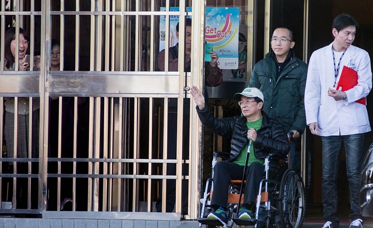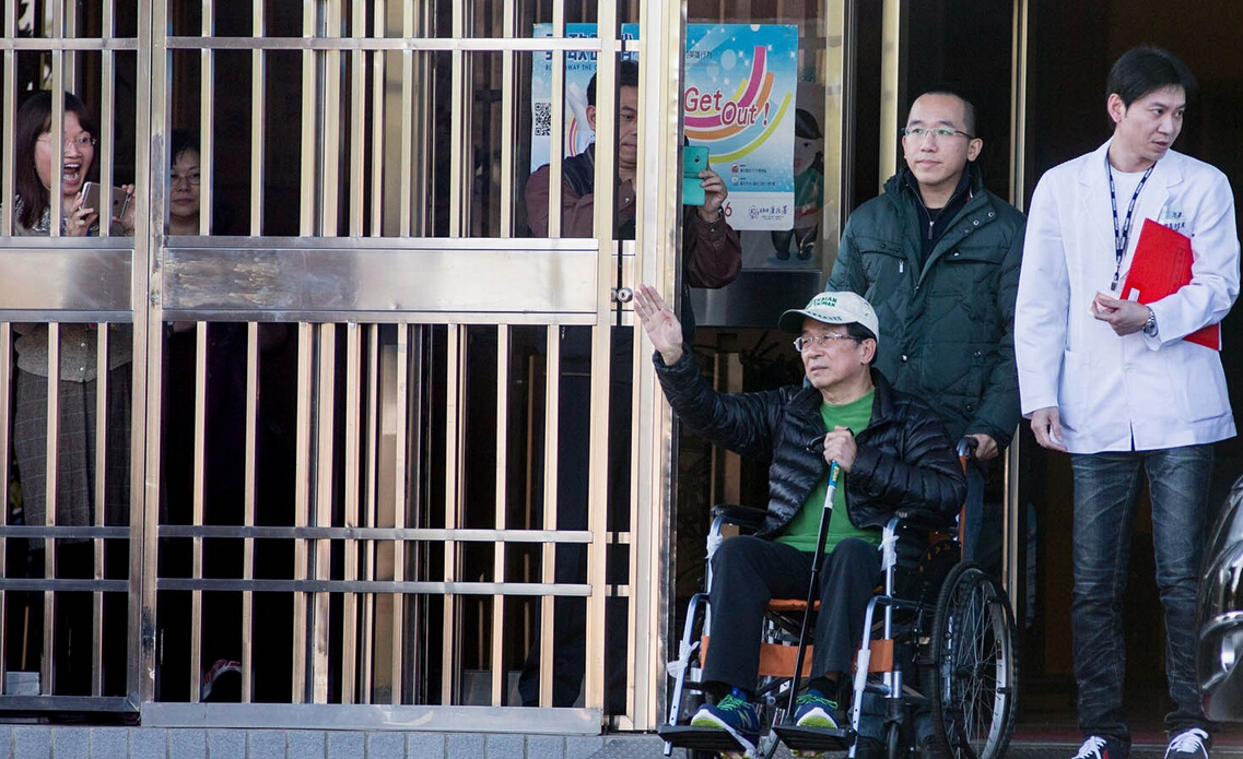 陈水扁获准保外就医出狱 警车护送开道