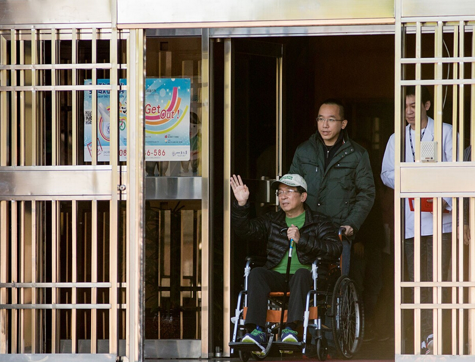 陈水扁获准保外就医出狱 警车护送开道