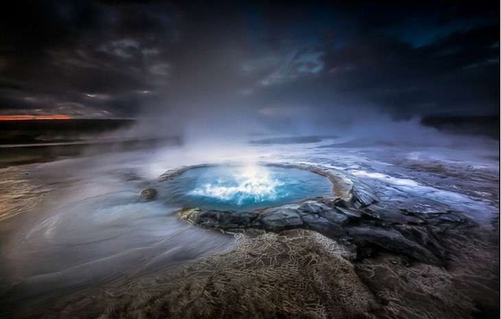 法国摄影师拍摄冰岛间歇泉壮丽画面
