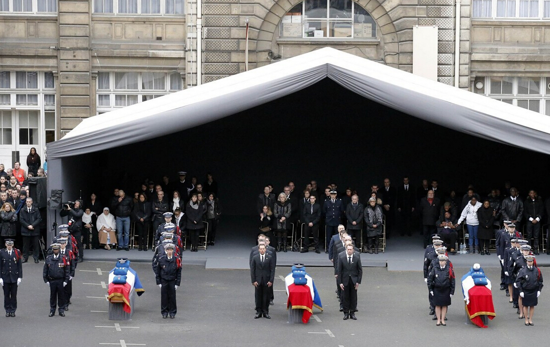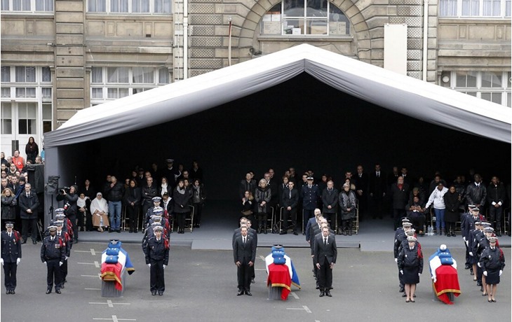 法国为恐袭遇难警察举行公祭 奥朗德出席
