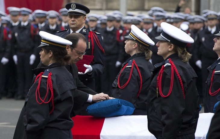 法国为恐袭遇难警察举行公祭 奥朗德出席
