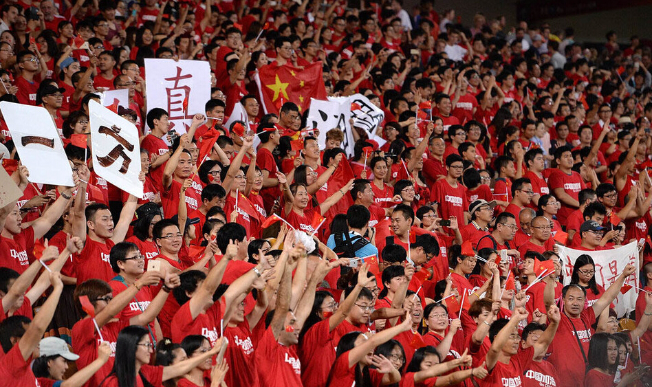 中国球迷是最可爱的人! 万人齐举犀利标语助国足逆转