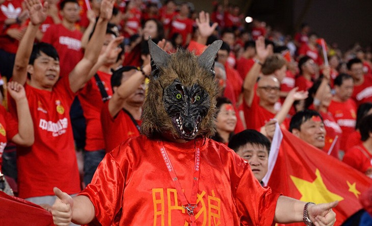 中国球迷是最可爱的人! 万人齐举犀利标语助国足逆转