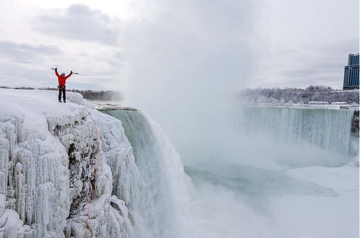 冒险家完成世界最大跨国瀑布攀爬