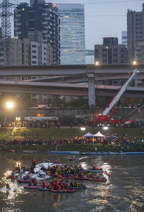 台湾坠机事件深夜搜救现场