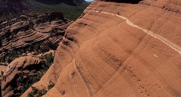 自行车手悬崖边缘骑行