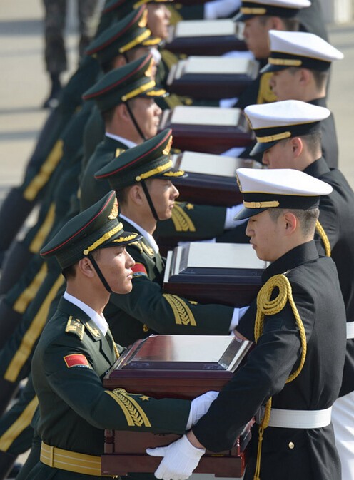 中韩交接志愿军烈士遗骸 国产歼-11B战机挂弹护送