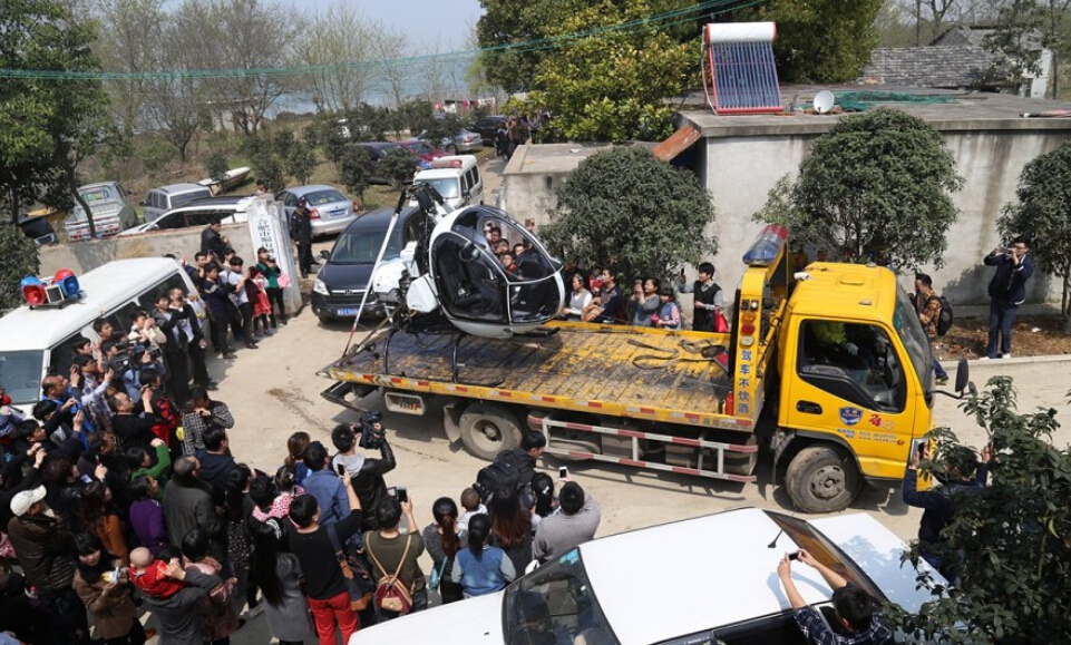 合肥坠水直升机打捞靠岸 未发现失踪者