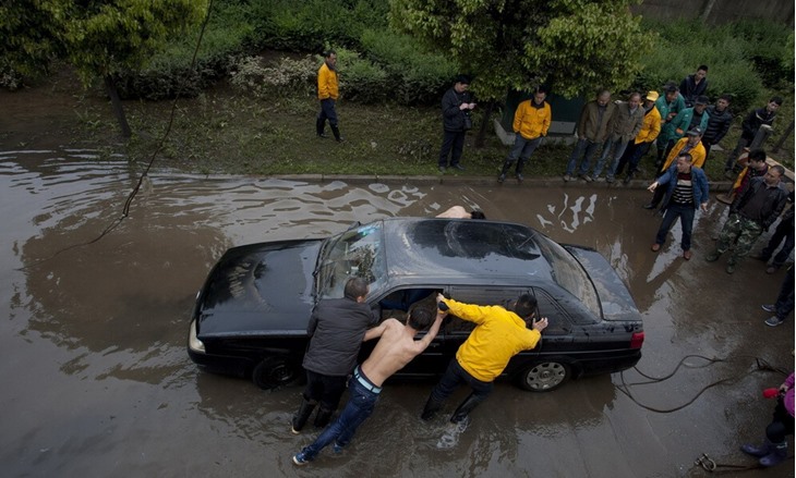 长沙遭暴雨“袭城” 车主花3000元拖车