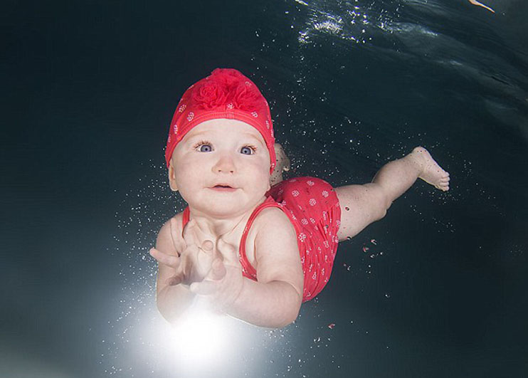 摄影师捕捉婴儿游泳萌态