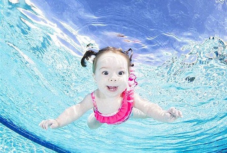 摄影师捕捉婴儿游泳萌态