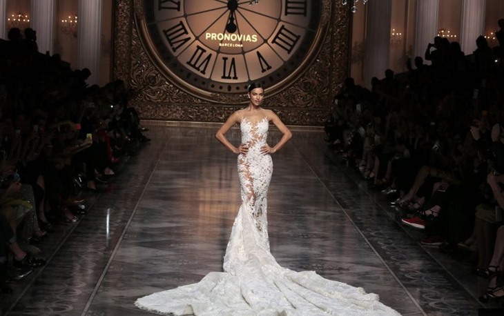 伊莲娜白色透视露背婚纱走台 美丽似公主