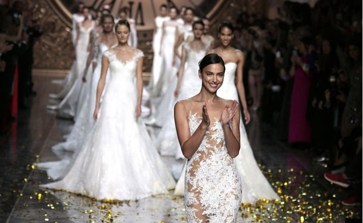 伊莲娜白色透视露背婚纱走台 美丽似公主